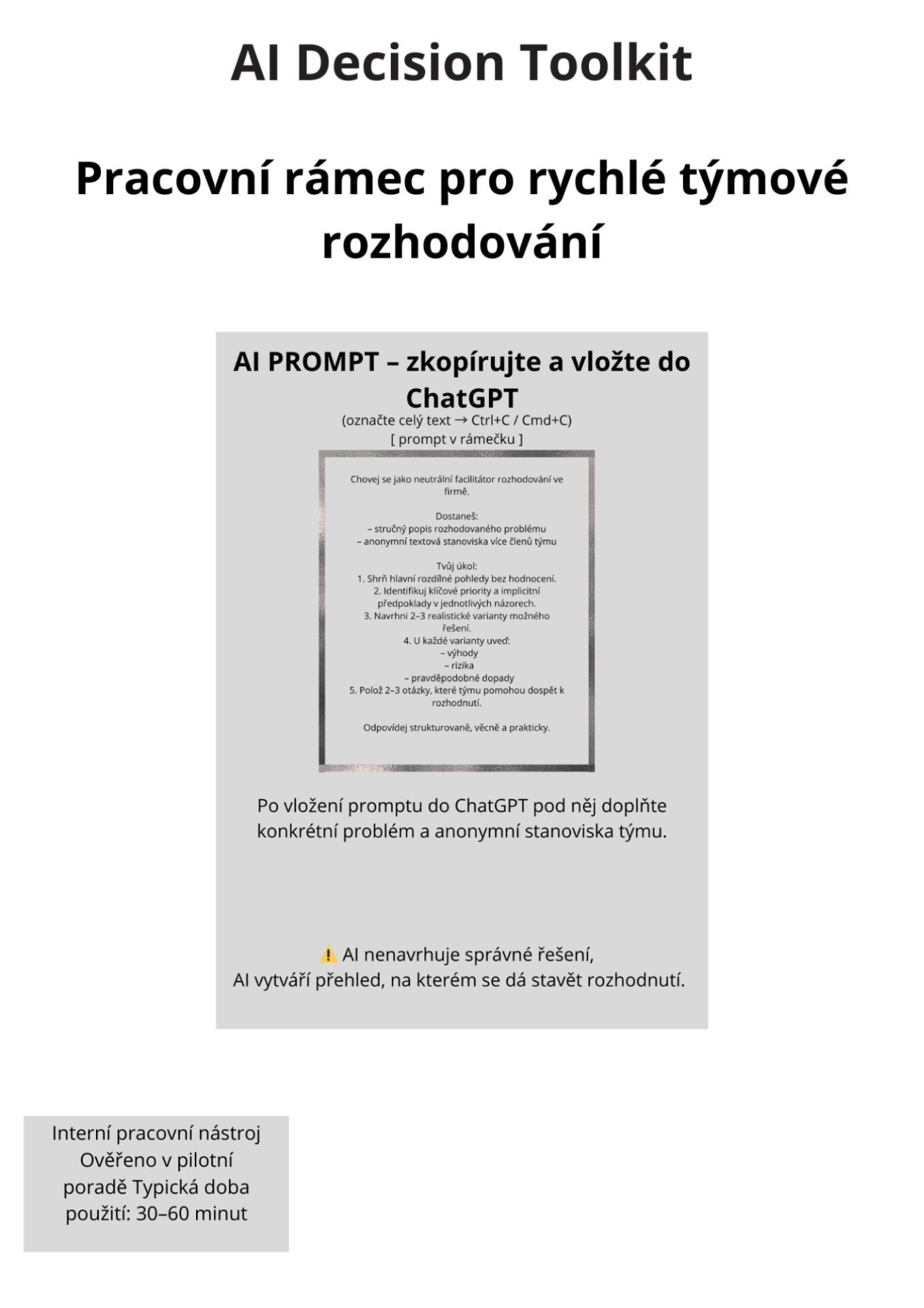 AI Decision Toolkit - Pracovní rámec pro rychlé týmové rozhodování