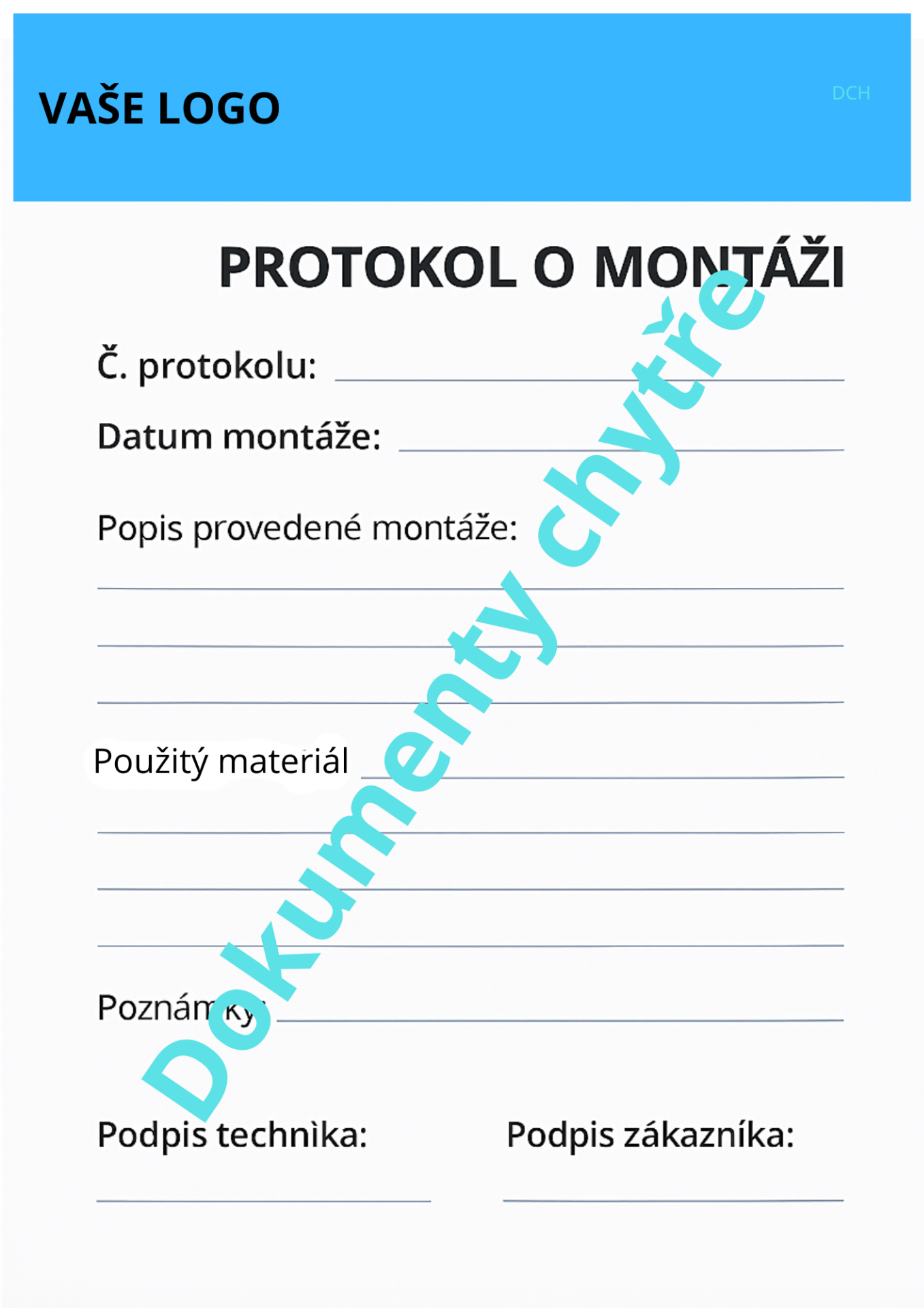 Během práce nebo po jejím skončení vyplňte Protokol o montáži.
